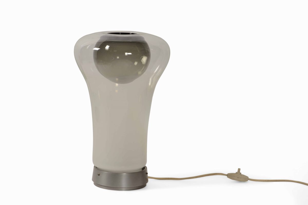Struttura in alluminio pressato e diffusore in vetro di Murano.