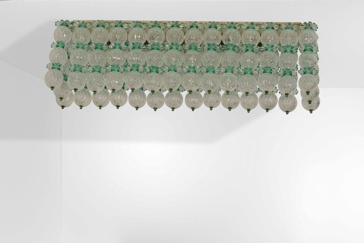 Lampada a plafone con struttura in ottone e elementi in vetro di Murano.