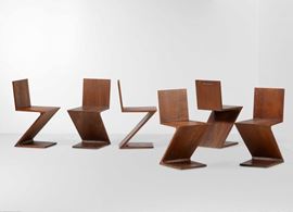 Sei sedie mod. Zig Zag con struttura in legno