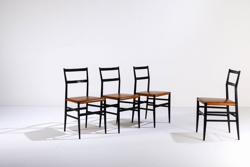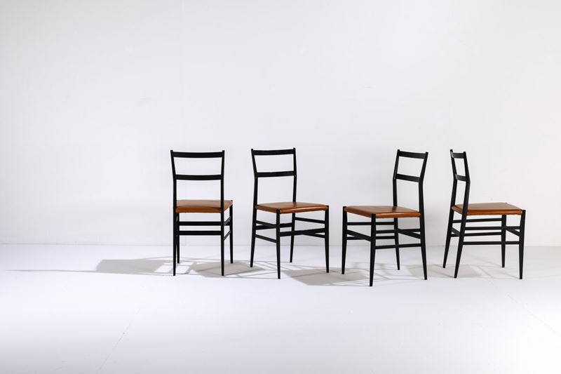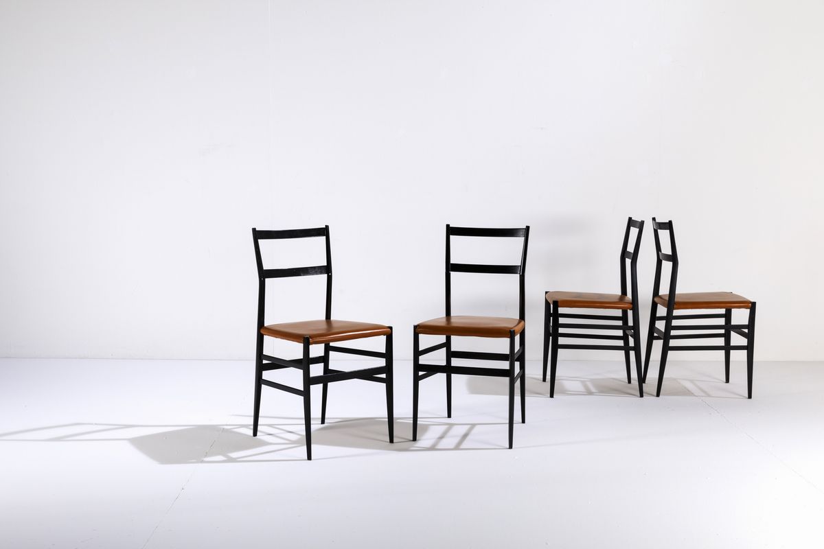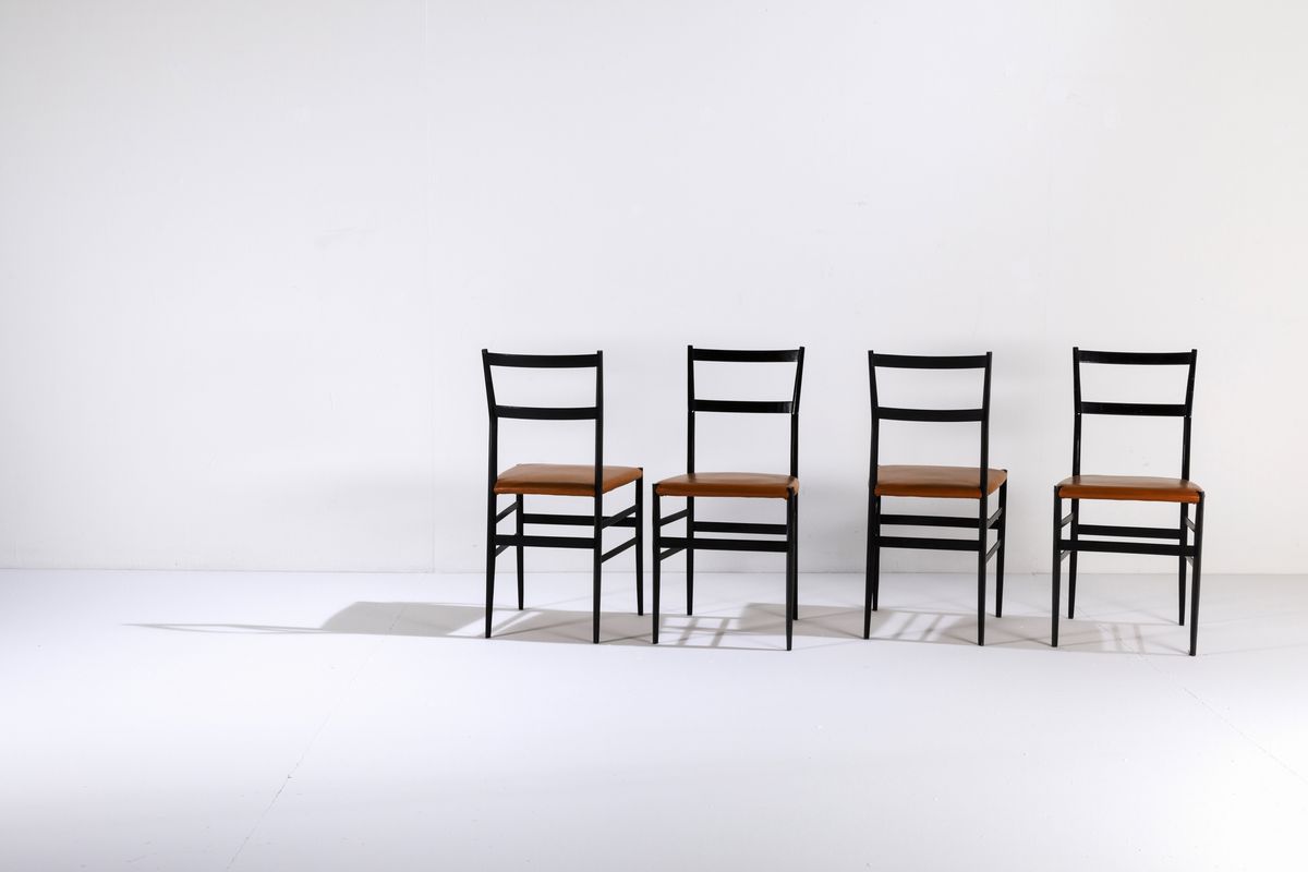 Quattro sedie Superleggera con struttura in legno laccato e seduta in skai.