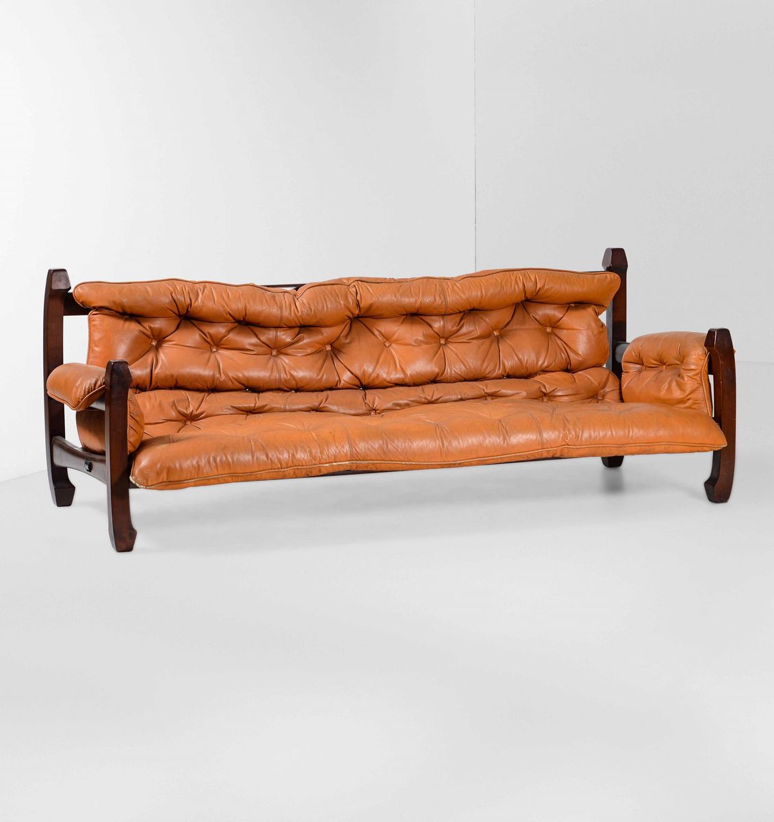 Divano mod. Samurai con struttura in legno e rivestimento in pelle.