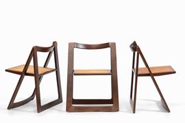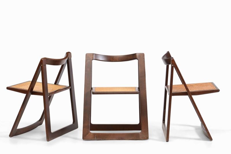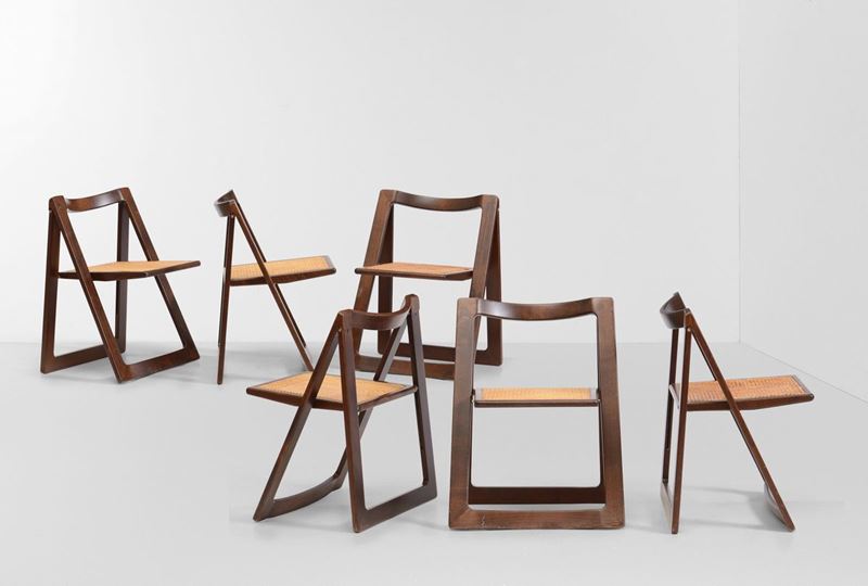 Sei sedie pieghevoli mod. Trieste con struttura in legno e rivestimento in paglia di Vienna.