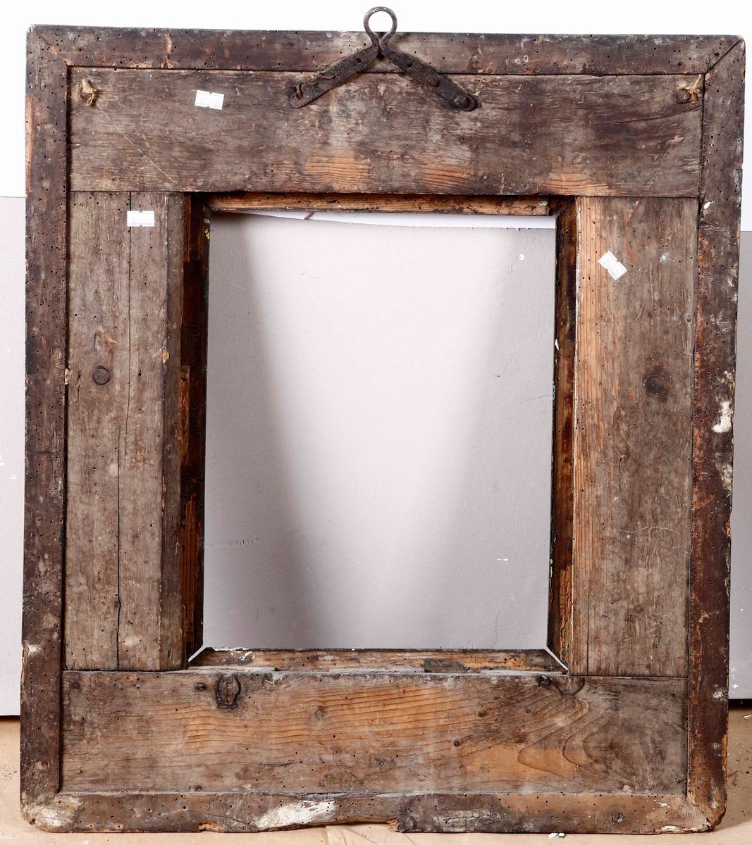 Antica cornice in legno intagliato, ebanizzato e dipinto