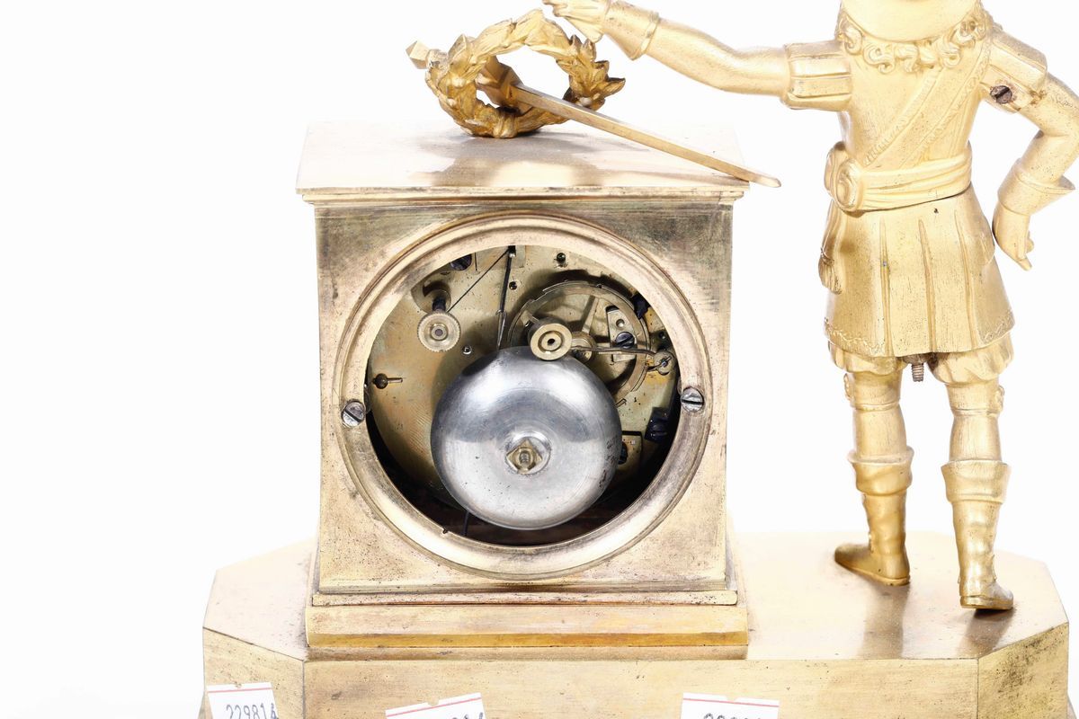 Pendola da tavolo in bronzo dorato, prima metà XIX secolo