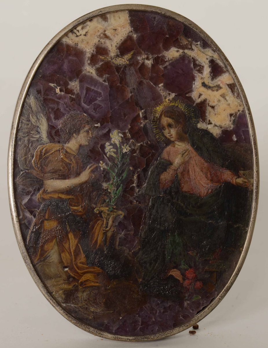 Piccolo dipinto su pietra raffigurante Annunciazione