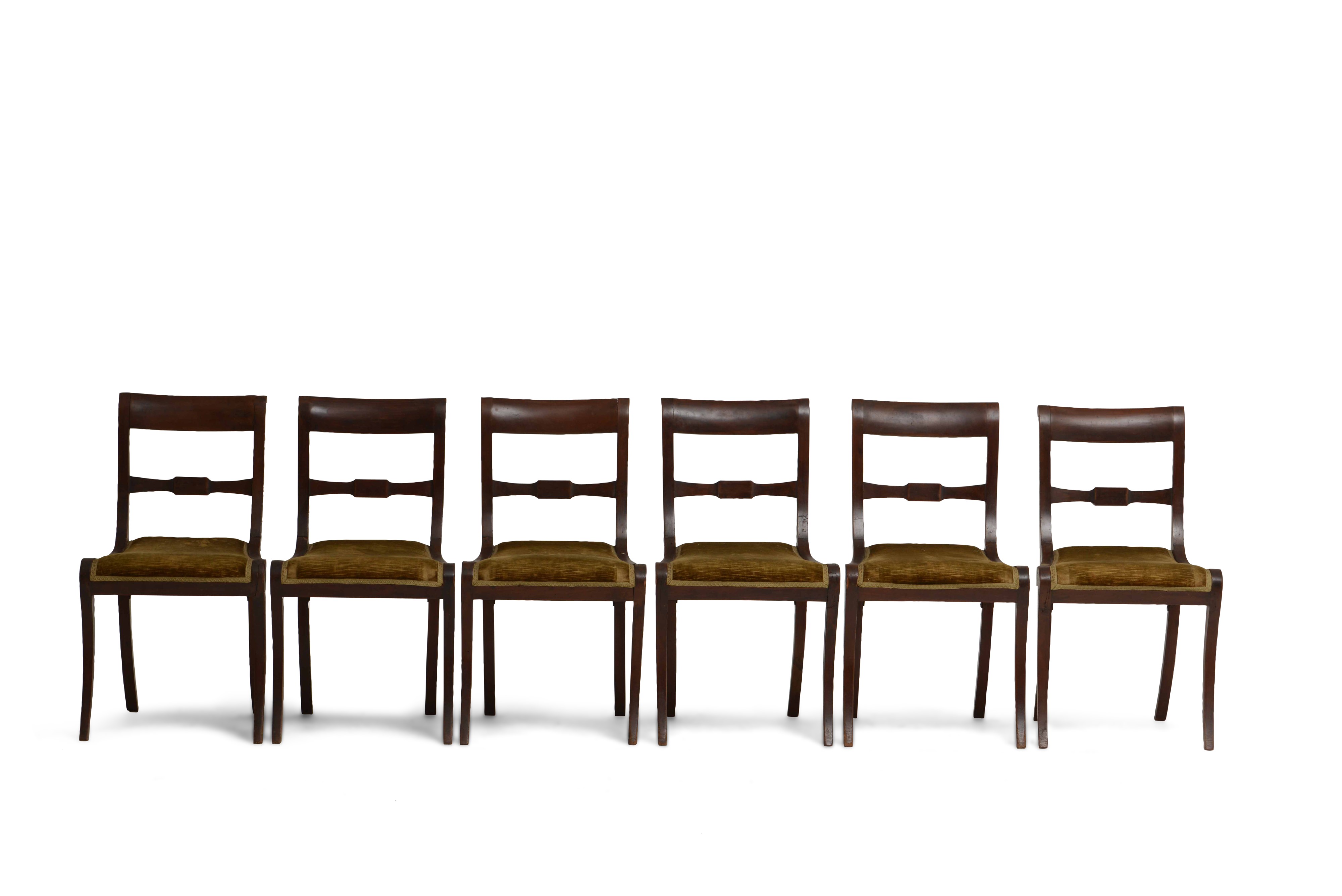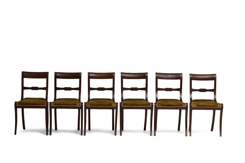 Tavolo da pranzo in mogano, unito a sei sedie “en suite”