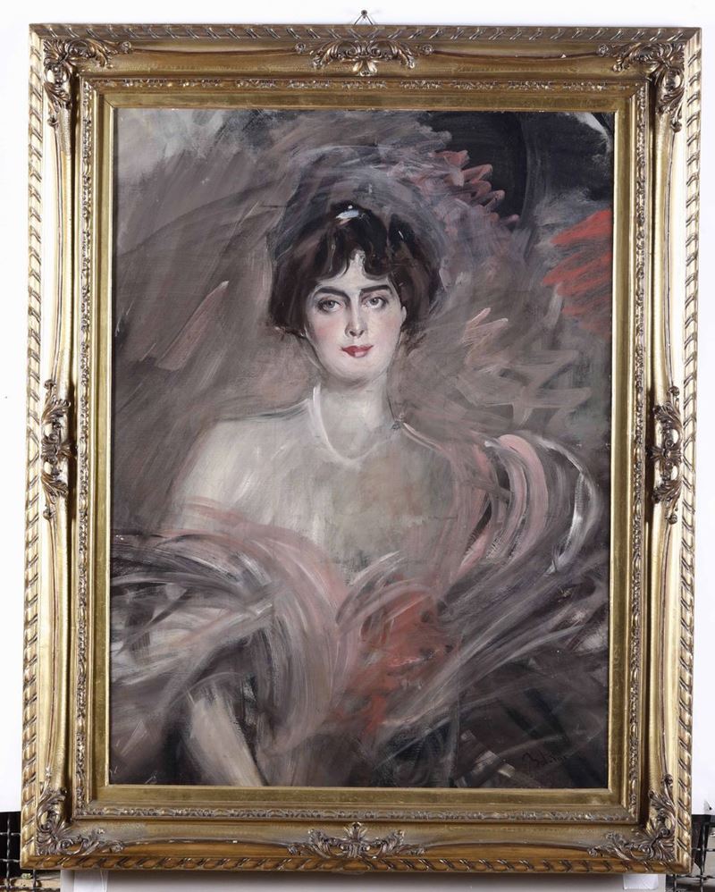 olio su tela, cm 97,5x71,5, firmato in basso a destra Boldini. Numerato al retro 29T da Emilia Cardona, vedova dell'artista