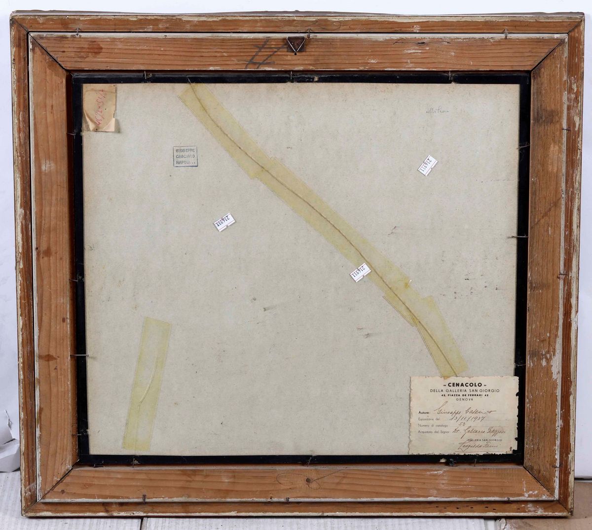 Al retro etichetta cartacea della Galleria San Giorgio di Genova