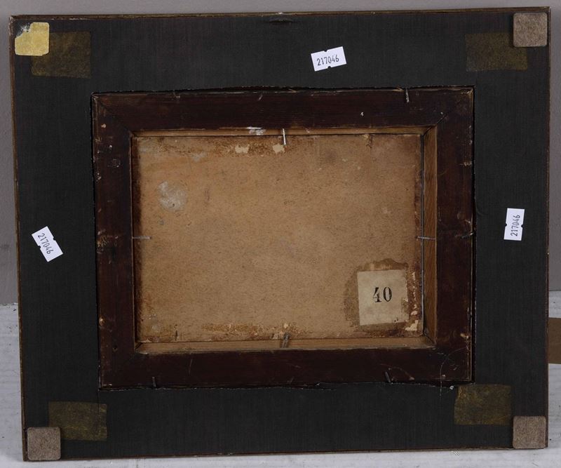 olio su compensato, cm 14x19,5, firmato in basso a destra