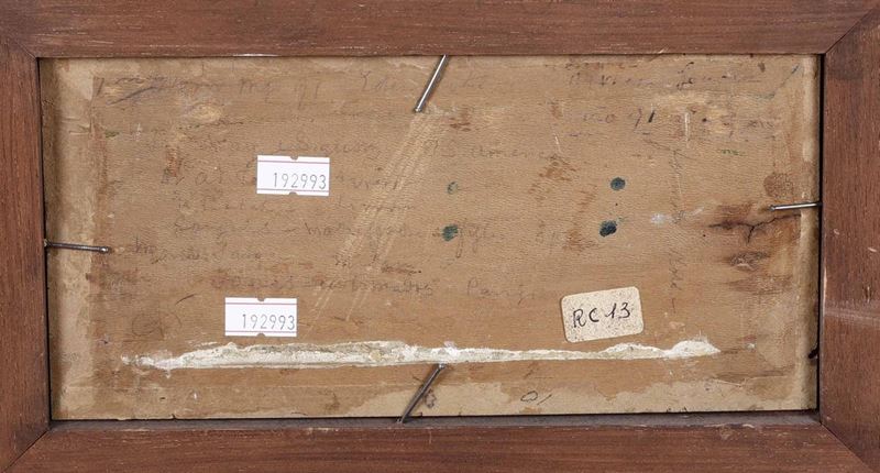 olio su tavoletta, cm 11,5x23, firmato in basso a destra