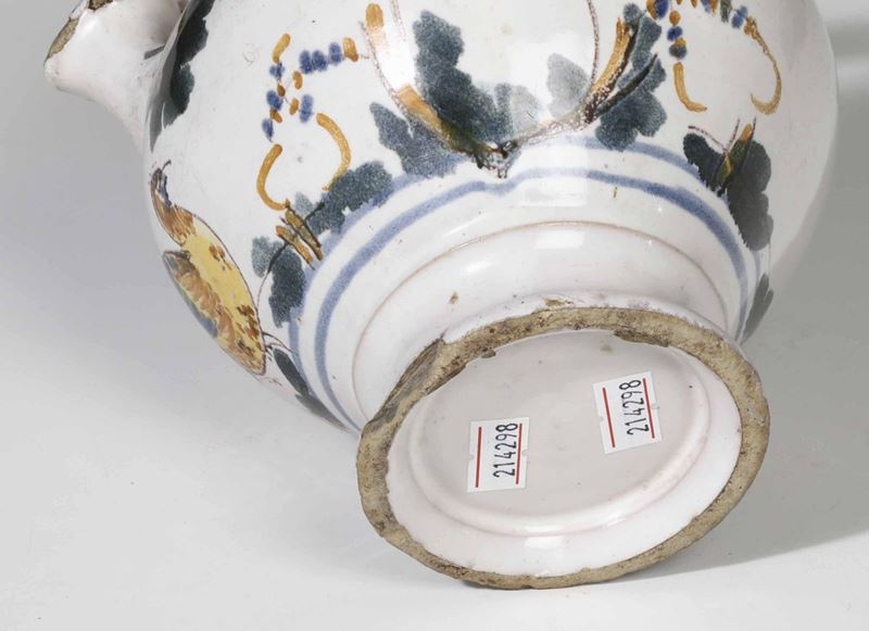 Maiolica. Marca: assente. Altezza cm 21. Conservazione: sbeccature e cadute di smalto
