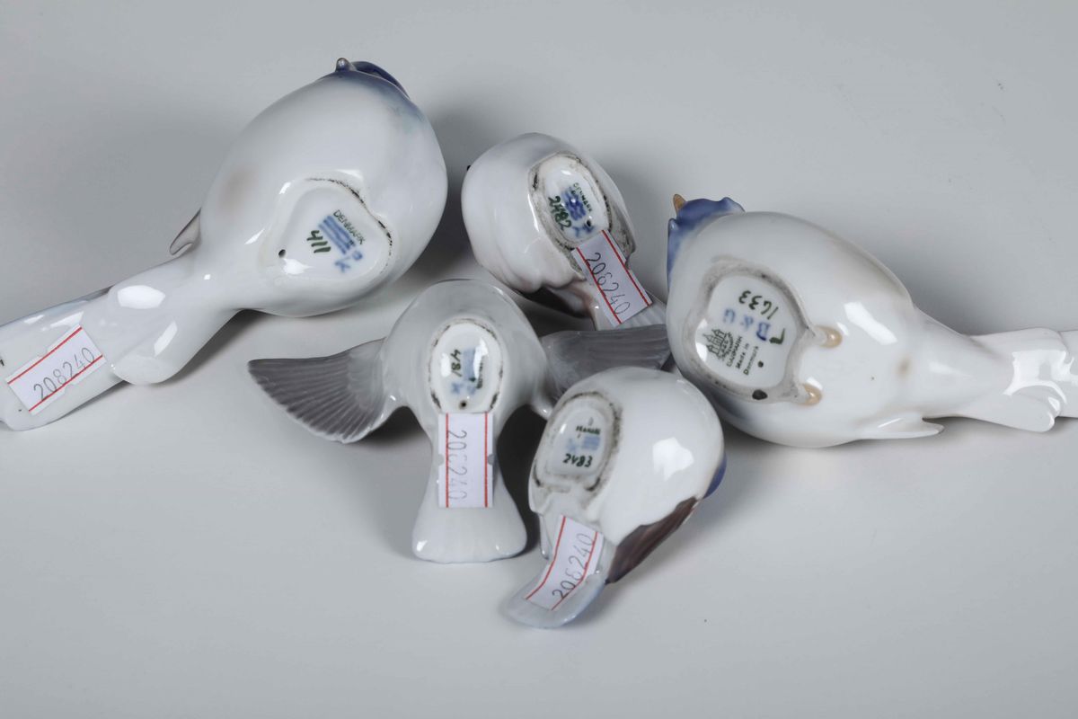Cinque figurine raffiguranti “cinciallegre” Danimarca, Manifattura Royal Copenaghen e Manifattura Bing & Grondahl, XX secolo