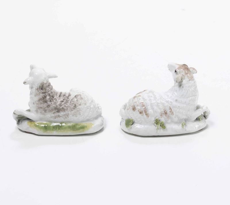 Coppia di figurine di pecora Maisen, meta XVIII secolo