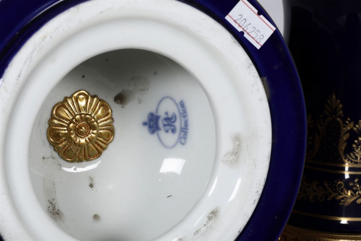 Porcellana e bronzo dorato. Marca: FVC Collection con corona in blu. Altezza cm 102. Ottimo stato di conservazione