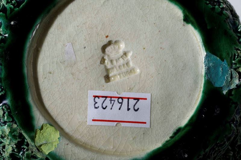 Due tazze con piattino e una zuccheriera Portogallo, Calda da Rainha, manifattura Manuel Mafra, 1870 - 1887 circa
