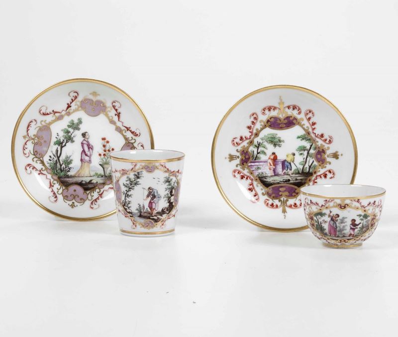 Due tazze e due piattini Doccia, Manifattura Ginori, seconda metà XVIII sec.