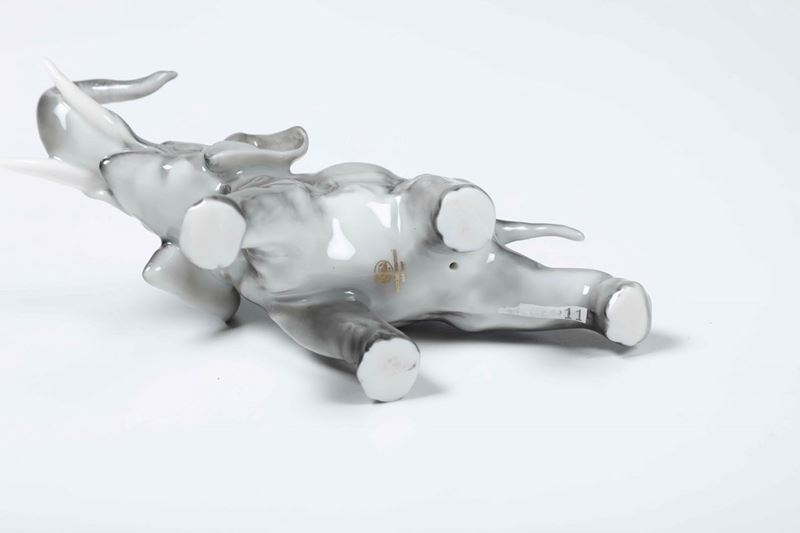Porcellana. Marca: simbolo della manifattura con leone e data 1814, HUTSCHENREUTHER GERMANY in oro. Dimensioni: h. cm 9x13x5,5. Buono stato di conservazione; parte della zanna sinistra rincollata