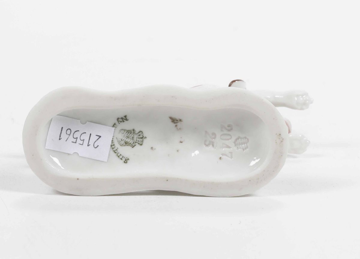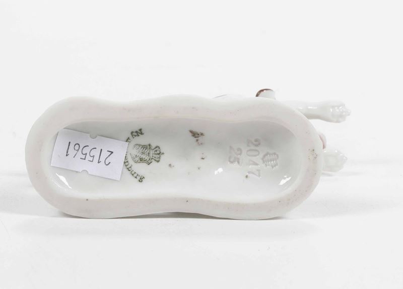 Porcellana. Dimensioni: altezza cm 9,2. Conservazione: restauro alla coda e forse alle zampe posteriori