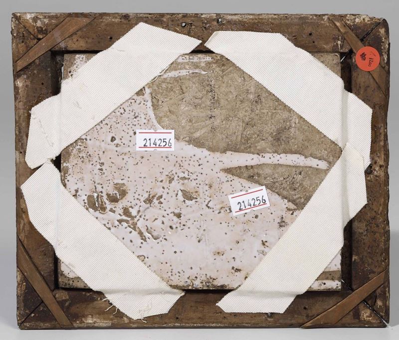 Maiolica. cm 13,5x16. Ottimo stato di conservazione. Antica cornice in legno