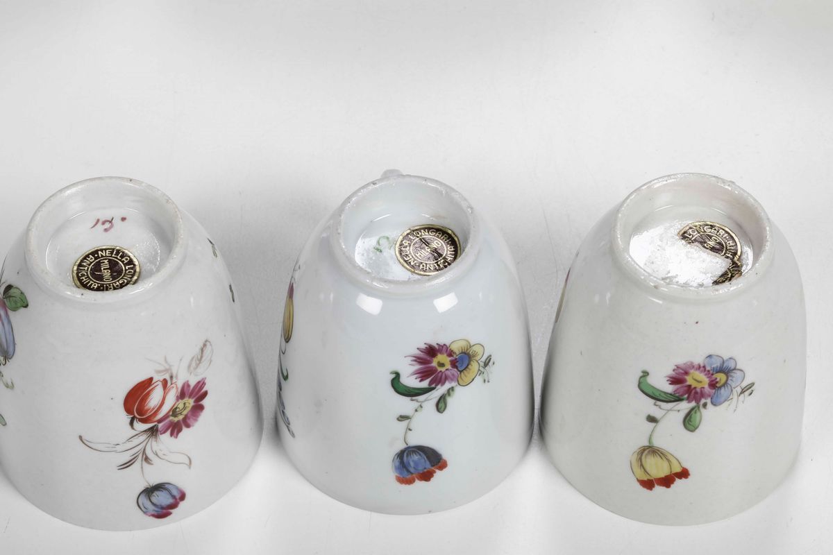 Nove tazze e dodici piattini Doccia, manifattura Ginori, 1780 circa