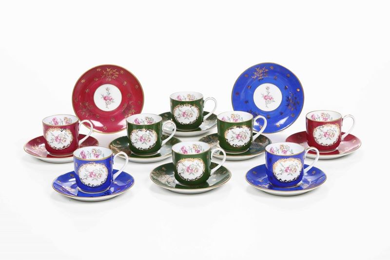 Otto tazze con piattino Francia, Limoges, XX secolo