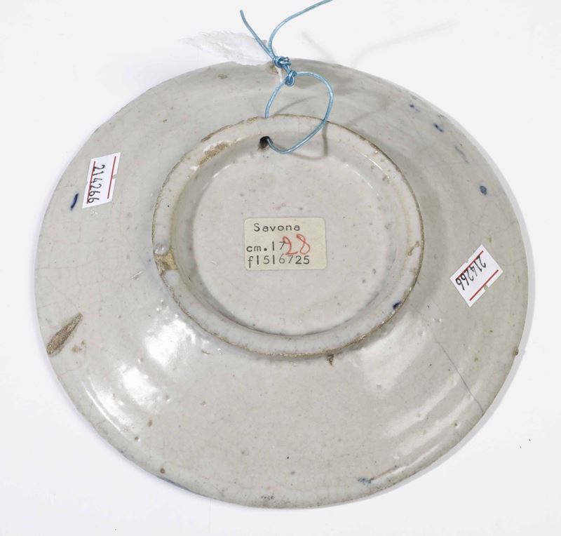 Maiolica. Marca: assente. Diametro cm 17,2. Conservazione: piccolo restauro al bordo