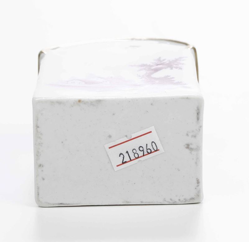Porcellana in monocromia rosso porpora e oro. Marca: assente. Dimensione: altezza cm 12,5. Conservazione: ottima; leggere usere all'oro; coperchio in argento moderno