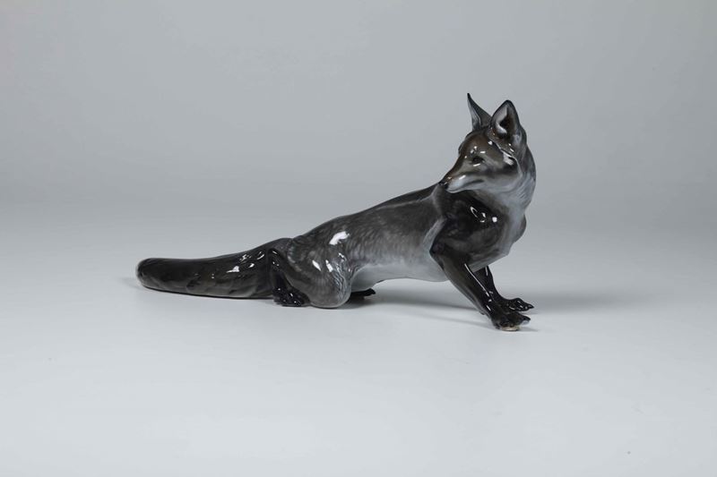 Scultura di volpe argentata Germania, Selb (Baviera), Manifattura Rosenthal, secondo quarto del XX secolo Modello di Theodor [..]