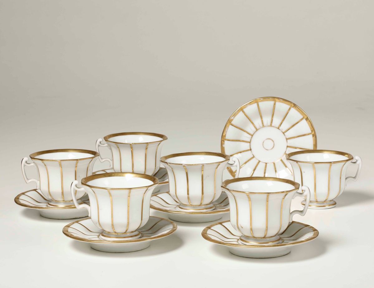 Sei tazze con piattino Probabilmente Italia, metà del XIX secolo