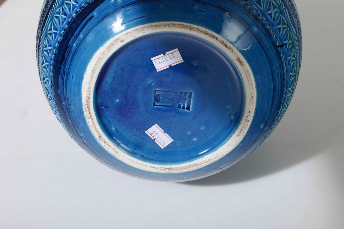 Ceramica invetriata. Marca: simbolo della manifattura e “Bitossi Made in Italy Rimini Blu” impresso. Altezza cm 22,5. Conservazione: ottima
