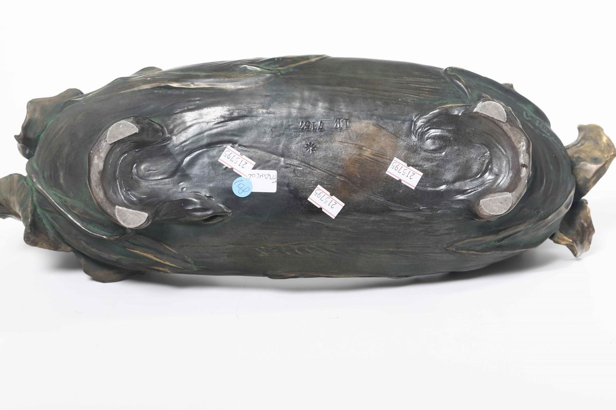 Il vaso modellato ha motivi floreali a rilievo Liberty e dipinto a imitazione del bronzo