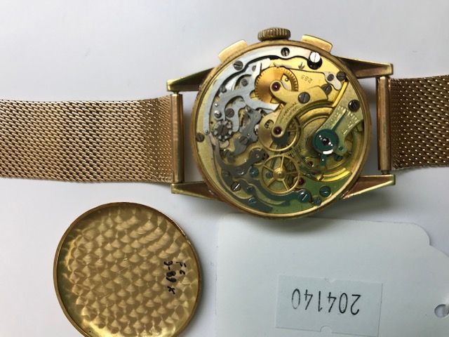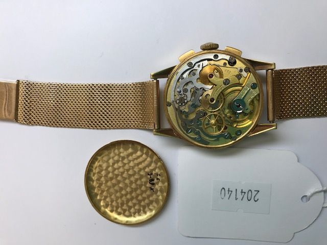 UNIVERSAL GENEVE - Yellow gold Compur wristwatch, second hand at 9 o'clock, red telemetry scale and blue tachymeter scale.
