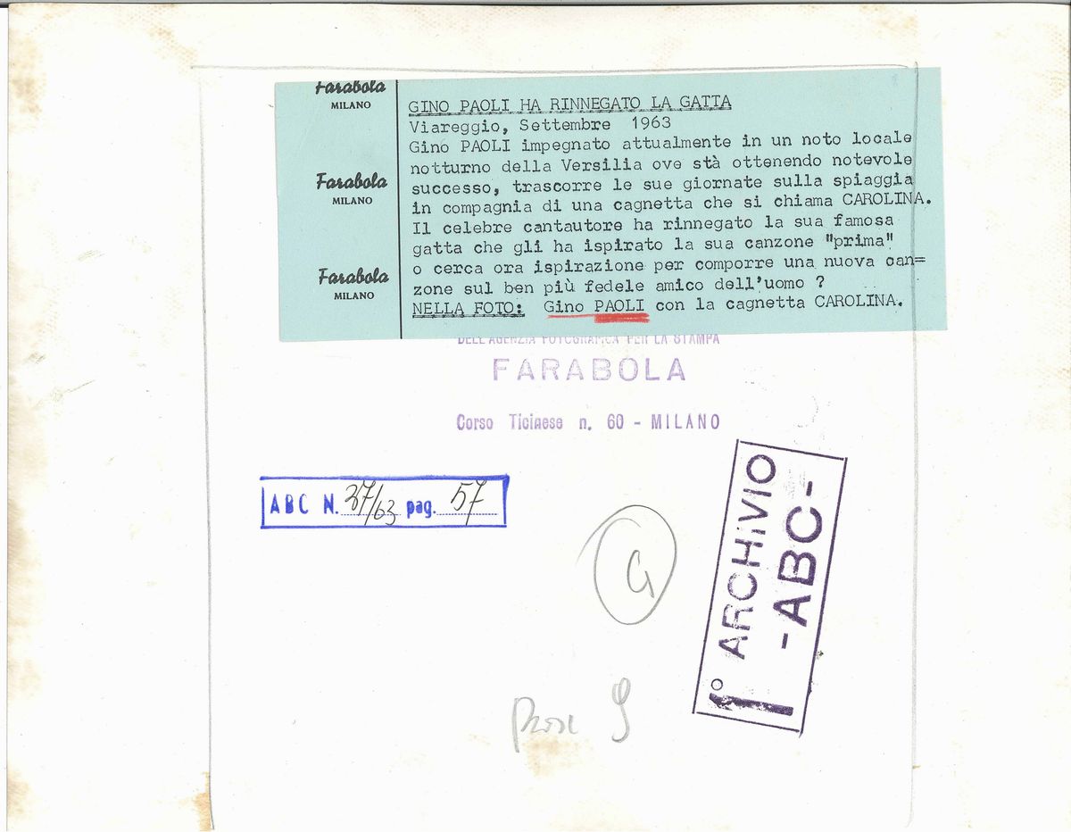 Gino Paoli con la cagnetta Carolina, Viareggio, Settembre 1963