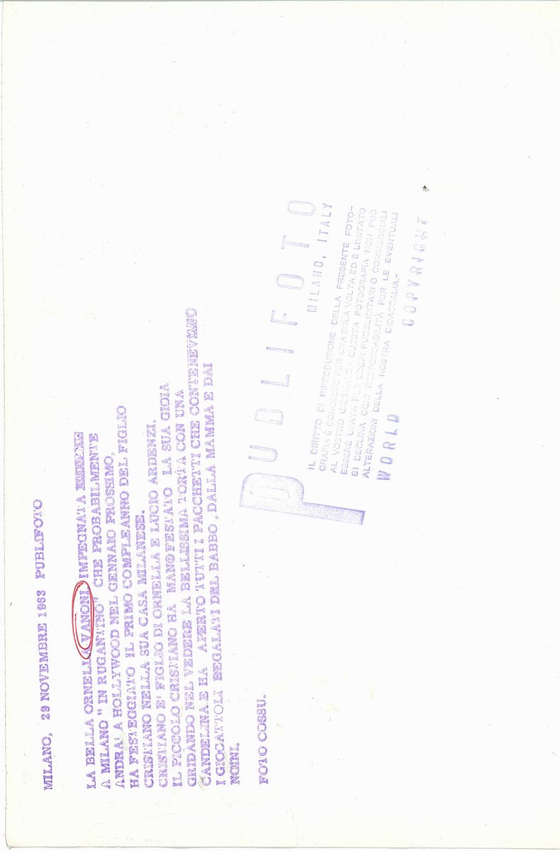 festeggia il primo compleanno del figlio Cristiano, Milano, 29 Novembre 1963