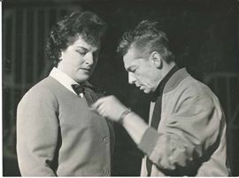 Durante la prova generale del “Fidelio” di Beethoven: il Direttore Herbert von Karajan con Birgit Nilsson