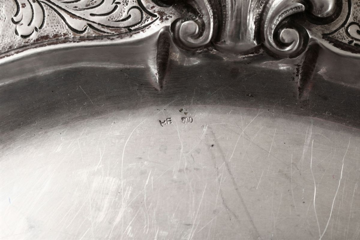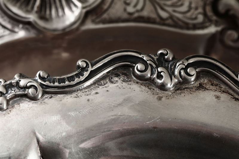Cestino e piatto argento. Cestino argentiere Messulam Milano, bolli del fascio in uso dal 1935 al 1945 Piatto manifattura [..]