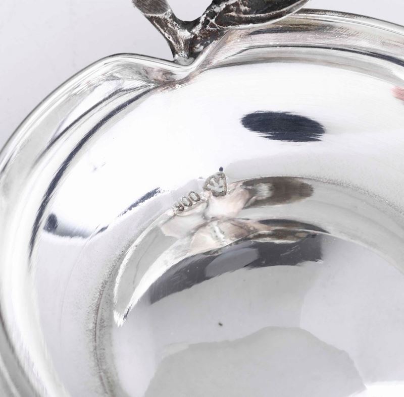 Coppetta a forma di mela in argento, Italia XX secolo e altra coppetta in argento con piedini, Egitto XX secolo