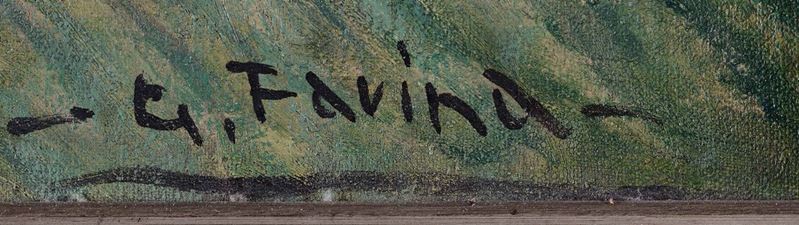 olio su cartoncino, cm 68x72, firmato in basso a destra