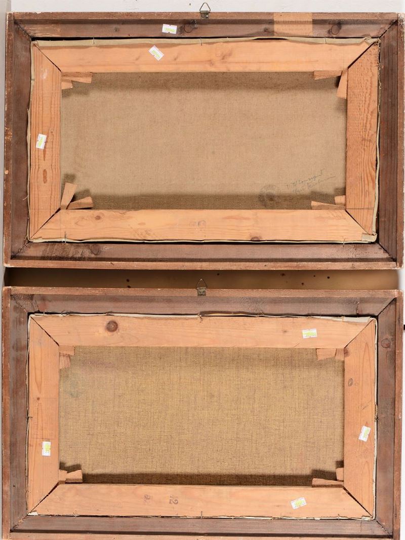 coppia di dipinti ad olio su tela, cm 30x52