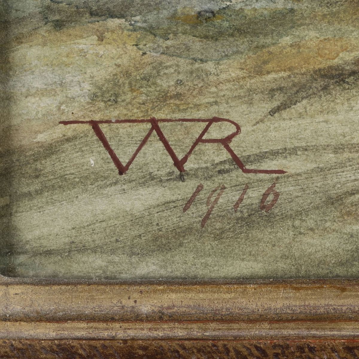 acquerello su carta, cm 68,5x40,5, siglato WR e datato 1916 in basso a sinistra