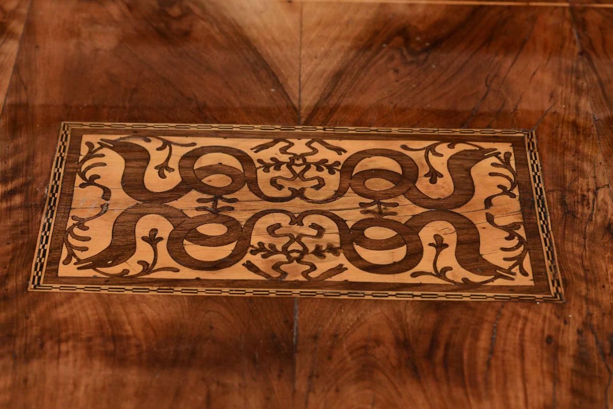 Consolle Carlo X impiallacciata in radica ed intarsiata, XIX secolo