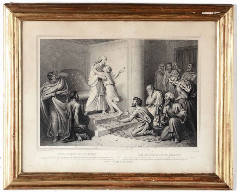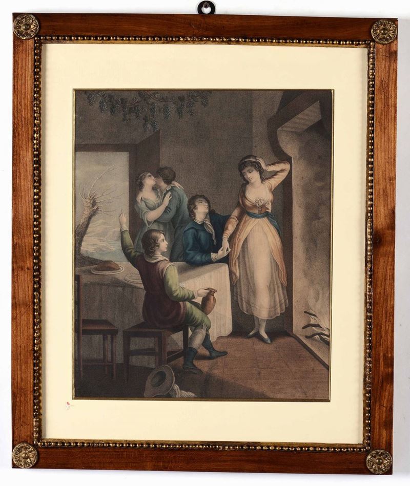 Quattro stampe, due in cornici dorate e due in cornici neoclassiche