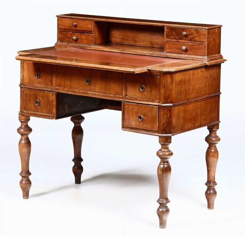 Scrittoio in noce con alzatina. Italia centrale, XIX secolo