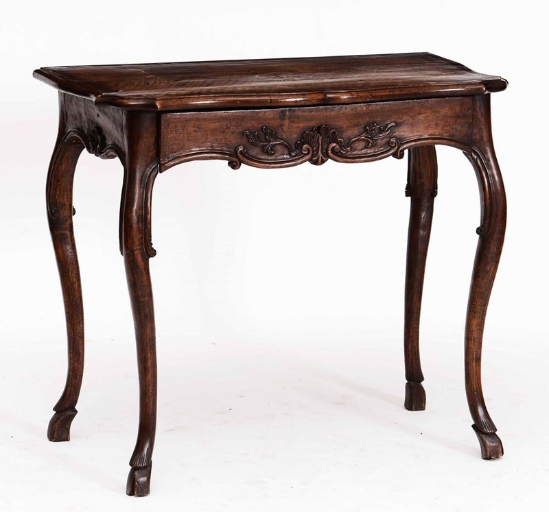 Tavolino Luigi XV in noce intagliato, XVIII-XIX secolo