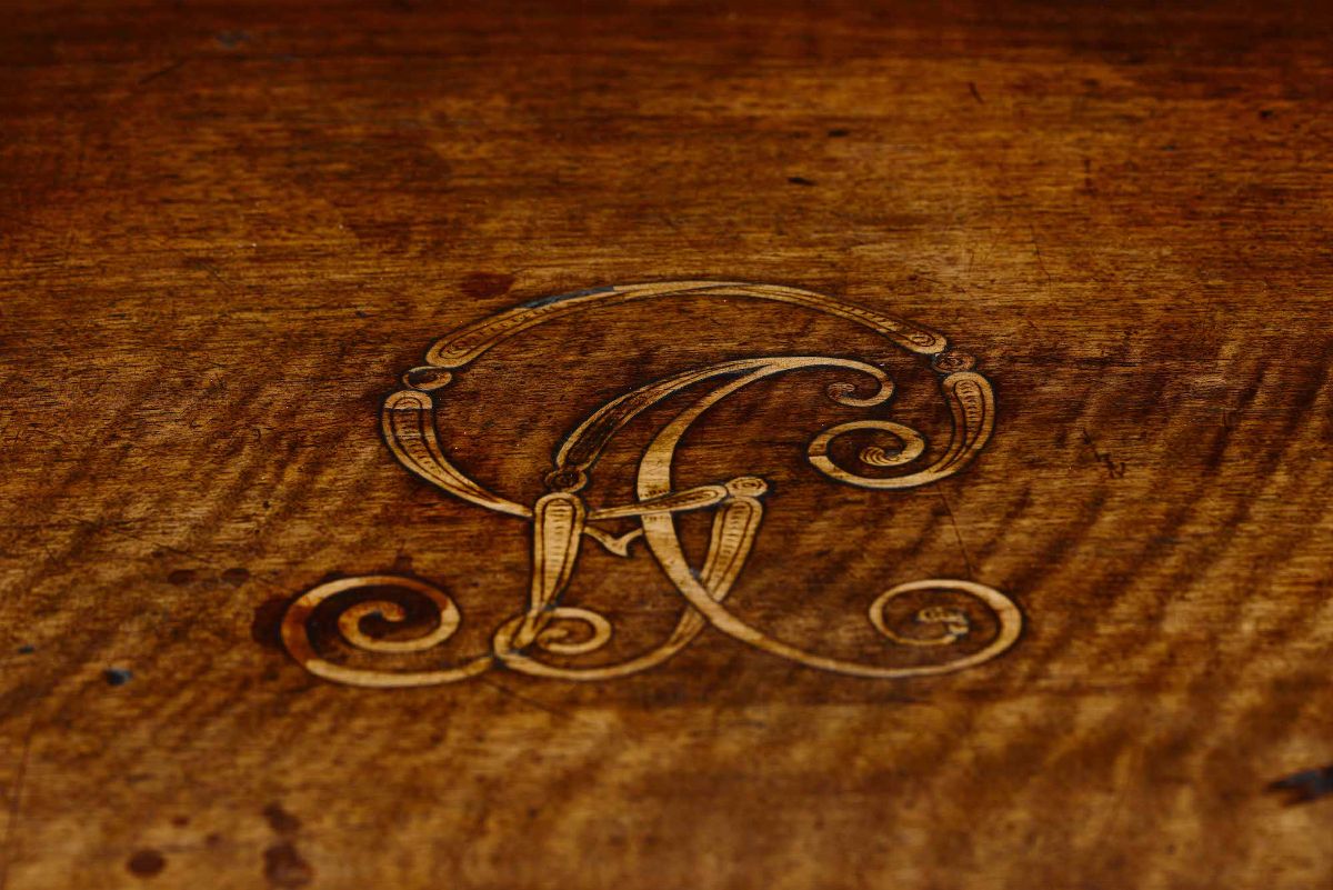 un cassetto sulla fascia, piano sagomato, gambe arcuate terminanti con piede caprino, cm 93x55x82