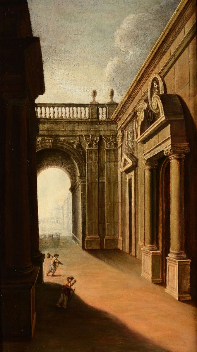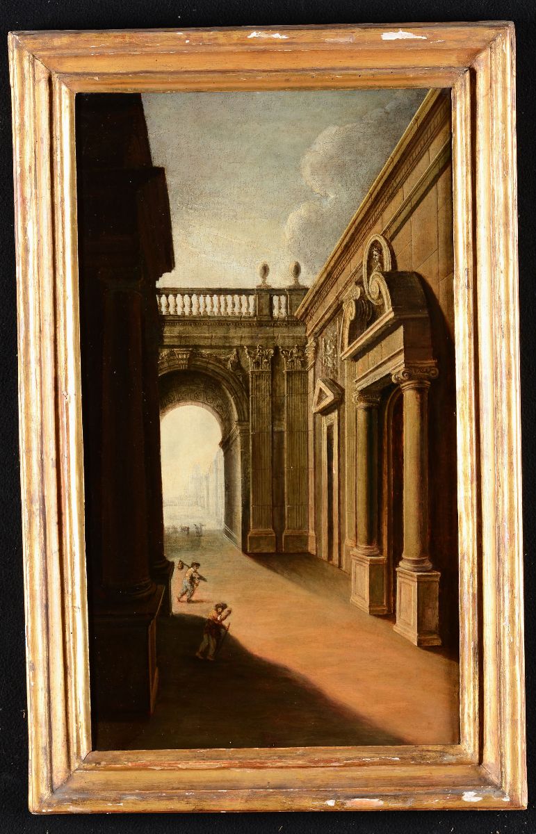 Scuola emiliana del XVIII secolo Capricci con architetture