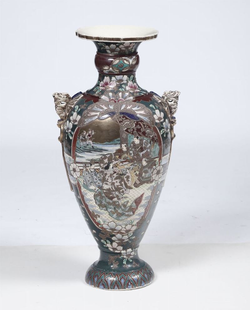 Vaso in porcellana Satsuma con soggetti naturalistici entro riserve e piccole anse a foggia di draghetto, Giappone, XX secolo