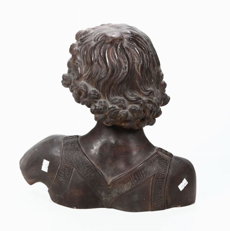 Terracotta patinata in color bronzo. Marca: “Manifattura di Signa” in corona di alloro impressa. Altezza cm 31,5. Ottimo stato di conservazione, insignificanti sbeccature
