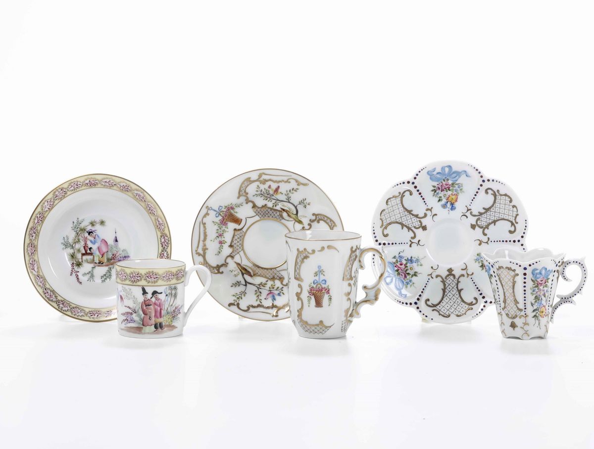 Tre tazze con piattino Decorazione di Laura Jannelli, 1970