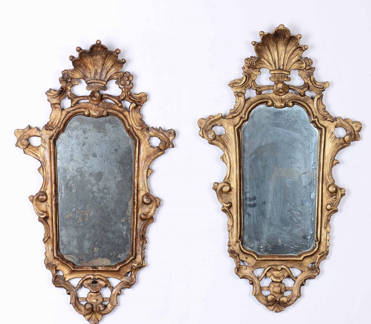 Due ventoline in legno intagliato e dorato. Italia settentrionale, XVIII secolo